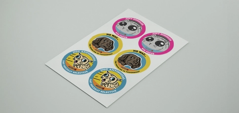 Du kan vælge, hvordan du vil modtage dine klistermærker: på ark eller enkeltvis. Arkene er som A4‑ark med flere klistermærker med “kiss‑cut”, perfekte hvis du foretrækker at løsne dem, som du har brug for dem. Vælger du enkeltvis, modtager du hver klistermærke separat, klar til brug.