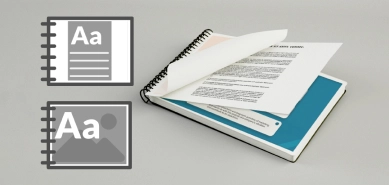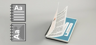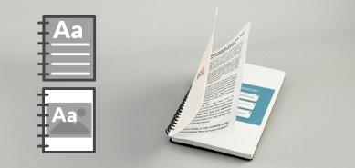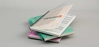 Du kan vælge at modtage dine dokumenter som løse ark, hæftede, laminerede eller indbundne med farvede spiraler.